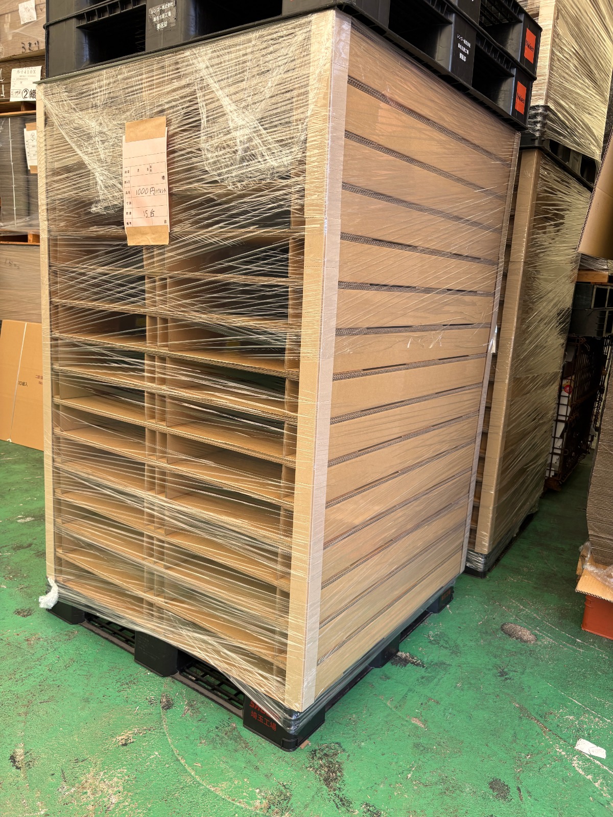 紙製ながらも高い耐久性を持ち、PPバンドやパレット輸送時の衝撃から製品を守る設計。
